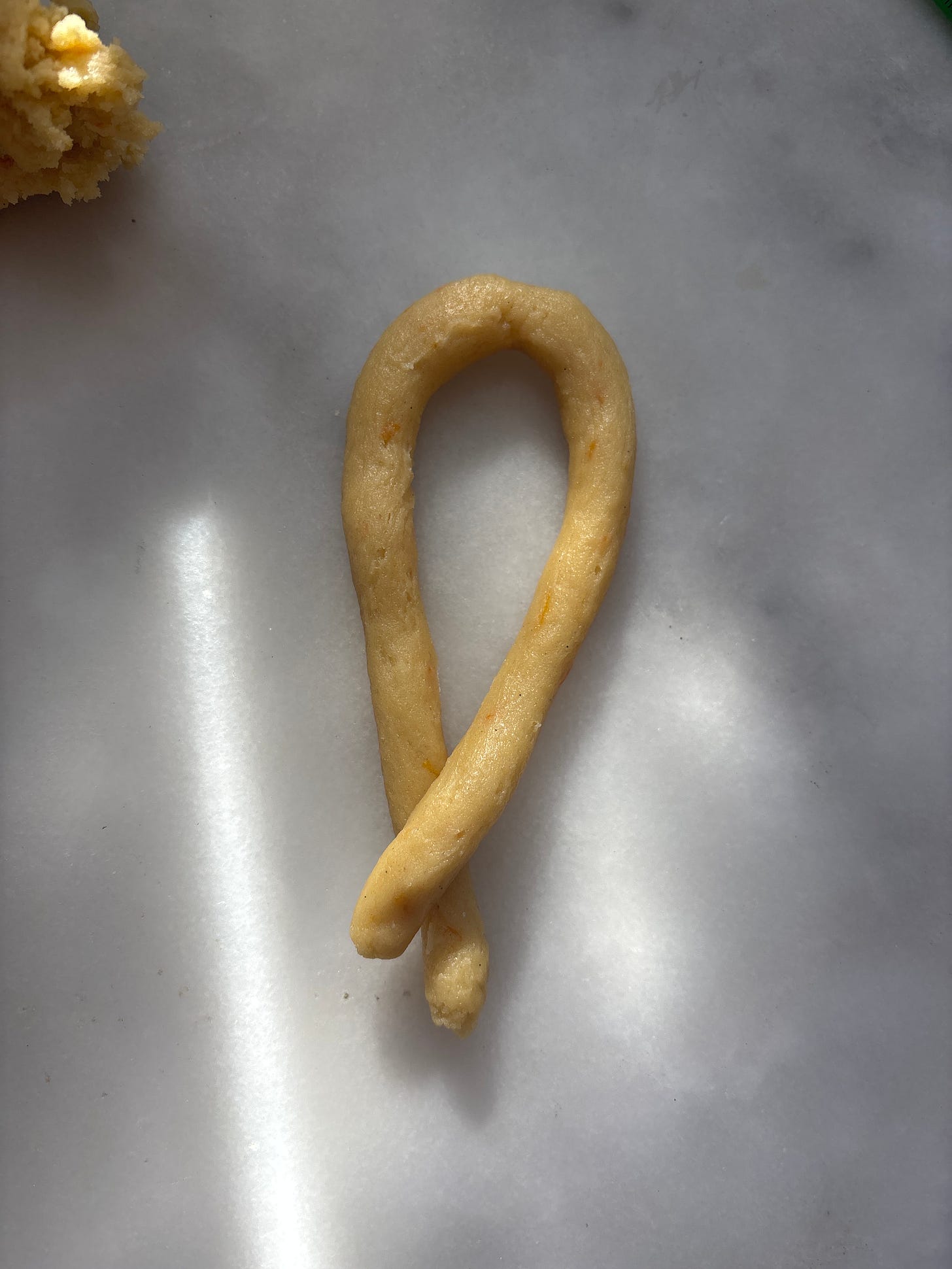 For the pop-up, I wondered if I could reinterpret the traditional Greek butter cookie, also called S cookies, into a more interesting shape, like the one I remebered from our trip. It took a couple practice rounds to get the shape right (& to hold in the oven), but it eventually it held. I added crushed anise seeds to the dough and used labneh to bind it together.