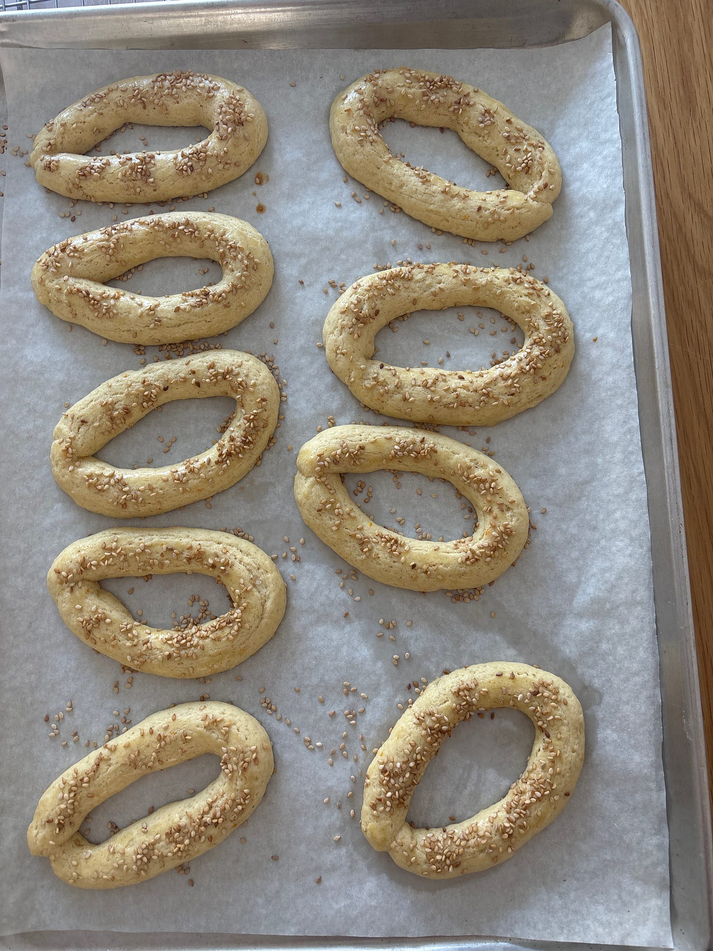 It’s the combination of anise, orange juice and sesame that makes you feel like you could eat 10, or maybe 20 of these cookies. They are not too sweet and perfect for dunking into strong coffee or packing into picnic boxes.